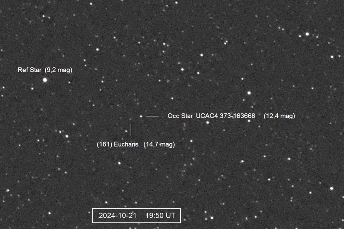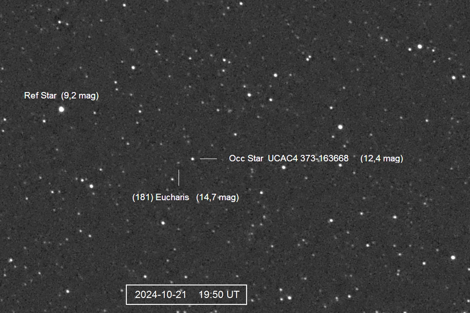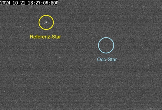 Nachstehend um 19:50 UT (= 21:50 MESZ) die Position des Asteroiden rund 82 Minuten nach der Bedeckung: