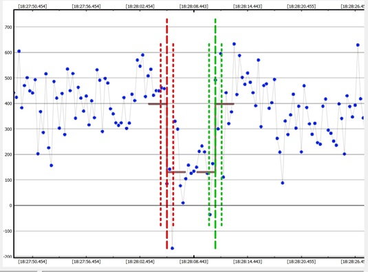 Bedeckungsdauer: 5,40 Sek. (+/-1,01s).