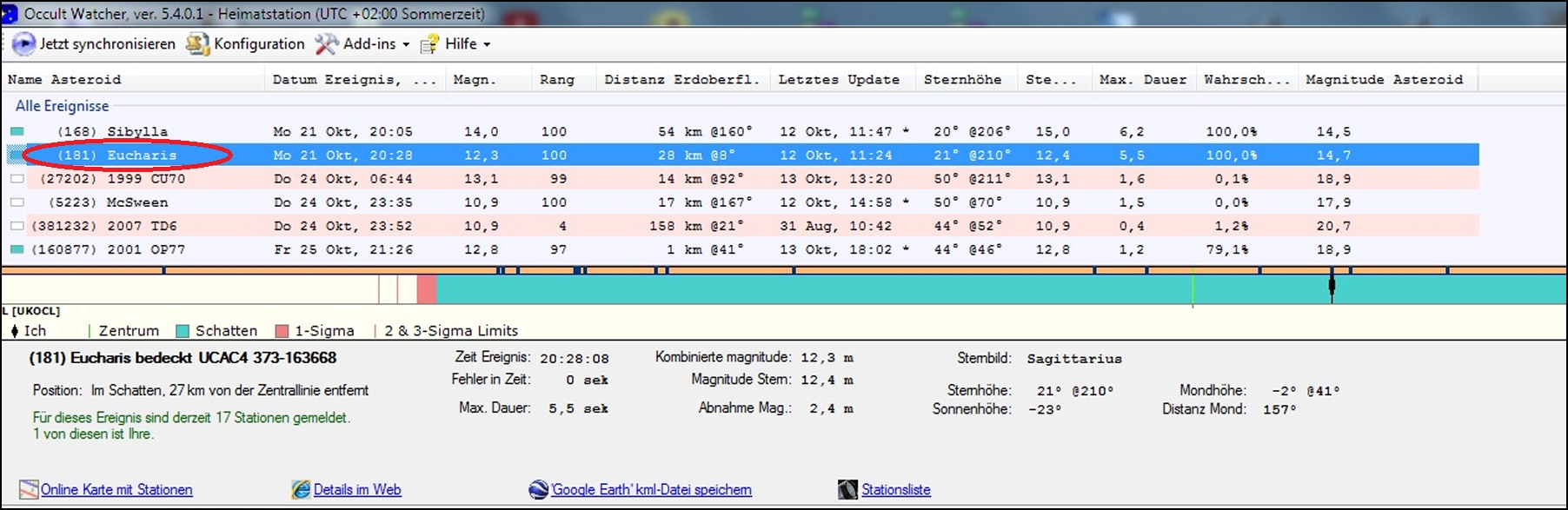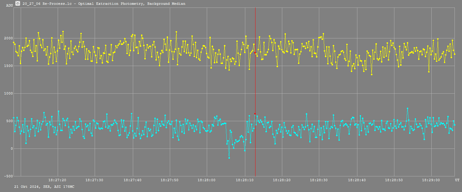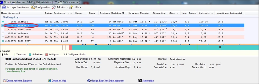 Beginn der Bedeckung: 18:28:05,30 UT (+/-0.6985s)