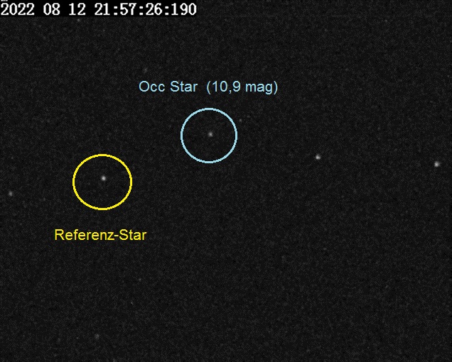 Bedeckung: ab 23:58:33 MESZ (Zeitfehler 17s); Dauer max. 3,9s / Abnahme 10,8 mag;