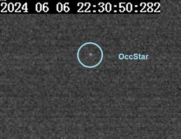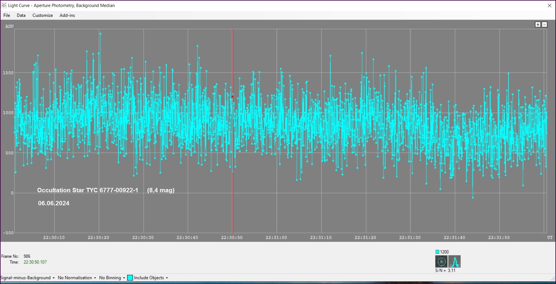 Bedeckung: ab 00:30:50 MESZ (+/- 0s); Dauer max. 0,9s / Abnahme 9,4 mag;