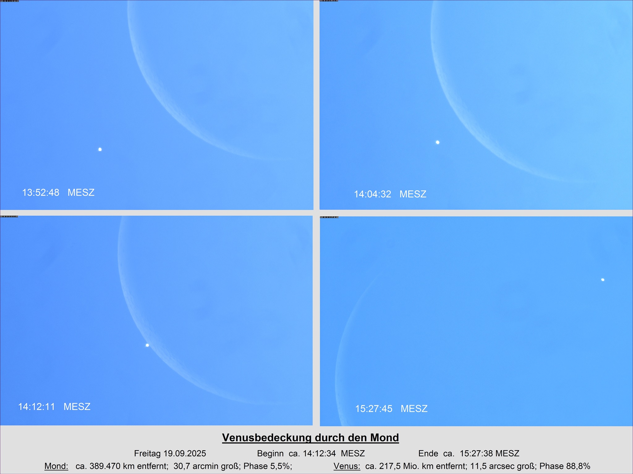 Mondphase 97,3 % abnehmend. Beim Austritt (14° ü. H. im Westen) war die Sonne (am Osthimmel) schon ü.H., Sonnenaufgang war um 06:19 MESZ.