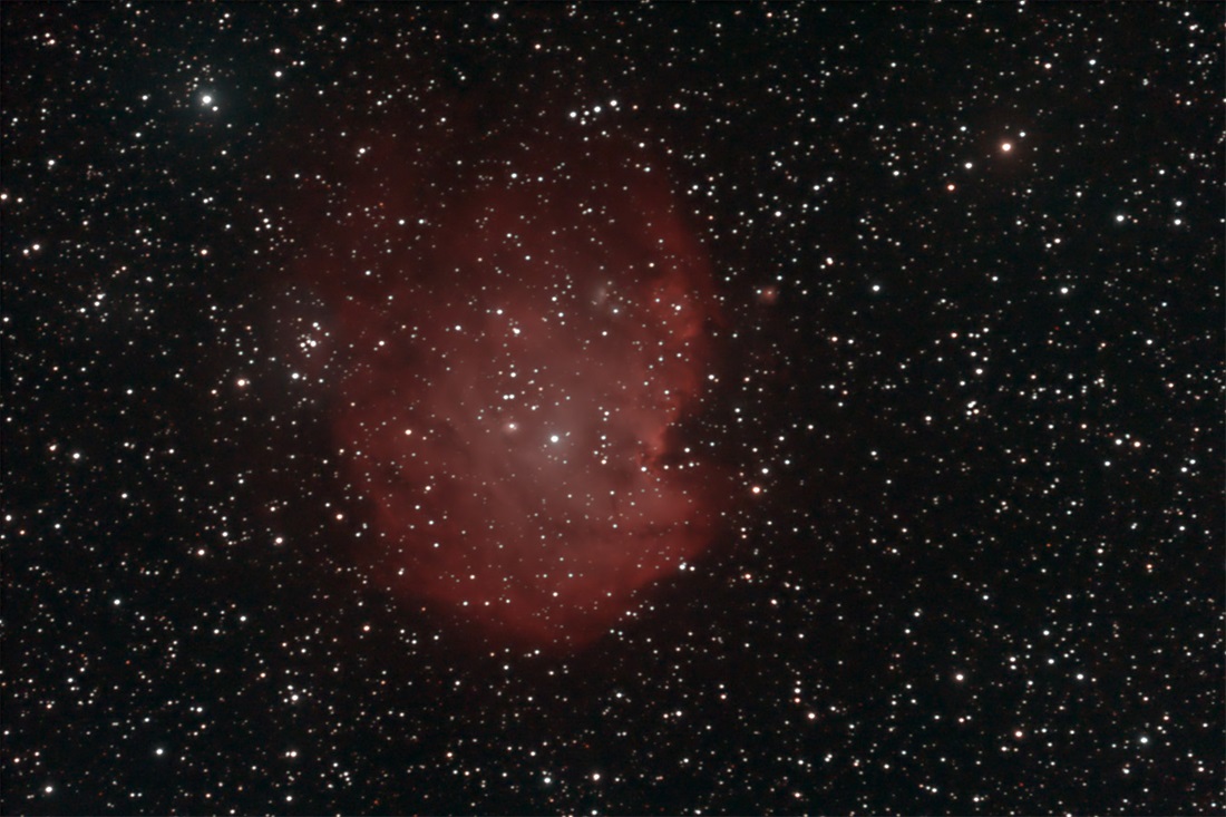 Die HII-Region (ca. 5800 Lichtjahre entfernt), rund 11° östlich von Sirius, beinhaltet auch die Offene Sternhaufen "Bochum 4" und "Bochum 5". Knapp darunter: der kleine Offene Haufen NGC 2409.